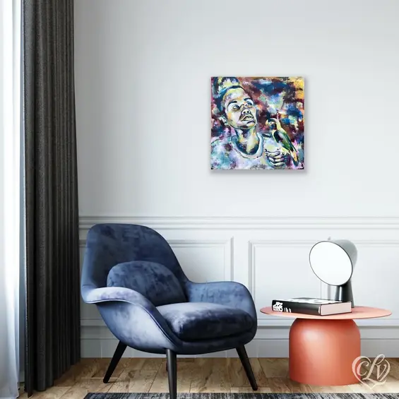 "Goddess of the Mountain" stands as a majestic tribute to the beauty and power found amidst the lush landscapes of the Dominican Republic. The goddess, exuding pride and grace, commands attention with her radiant presence and vibrant colors. Perched upon her hand, a small parrot symbolizes the harmonious bond between nature and divinity. With a regal bun atop her head, she embodies strength and elegance, a testament to the awe-inspiring sights discovered in the mountains.